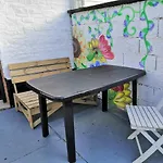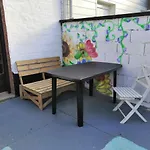 An outdoor dining area with coffee/tea making equipment are at the guests' disposal. On-site self-catering also includes a microwave oven, a fridge, and kitchenware.